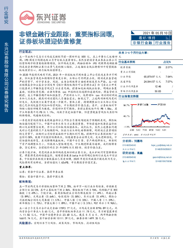东兴证券:非银金融行业跟踪:重要指标回暖,证券板块望迎估值修复.pdf