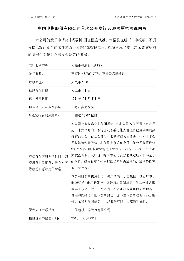 中国电影股份有限公司上交所主板IPO上市招股说明书.pdf