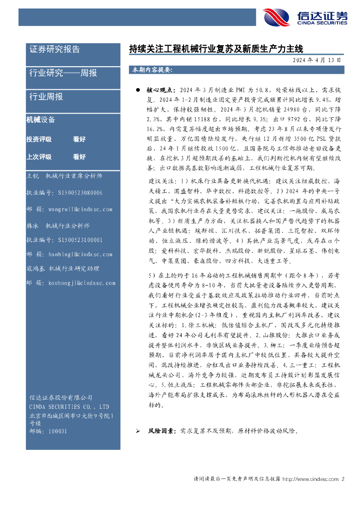 信达证券:持续关注工程机械行业复苏及新质生产力主线机械设备.pdf
