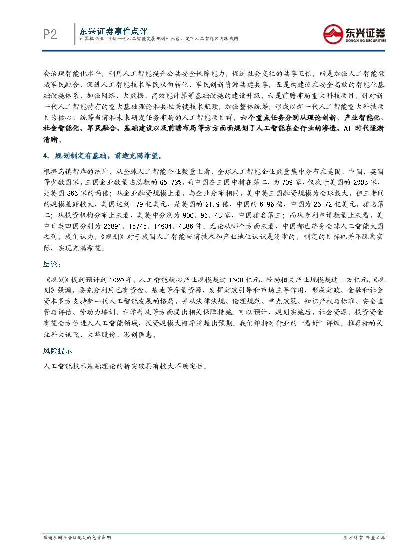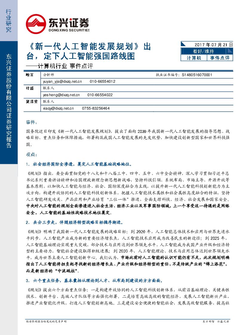 东兴证券:计算机行业事件点评:《新一代人工智能发展规划》出台,定下人工智能强国路线图.pdf