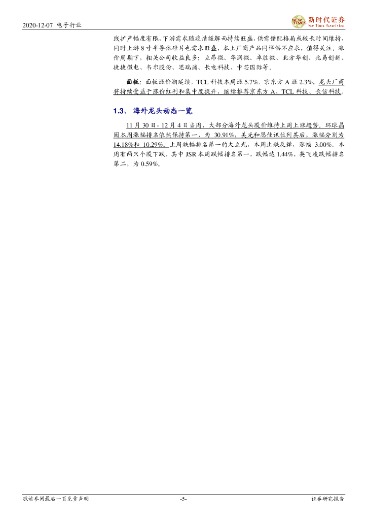 新时代证券:电子周报:行业备货积极,供给偏紧是半导体主基调——《周观点》系列.pdf