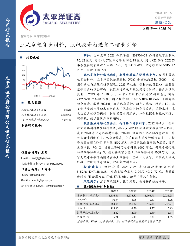 太平洋证券:立霸股份(603519)-立足家电复合材料,股权投资打造第二增长引擎.pdf