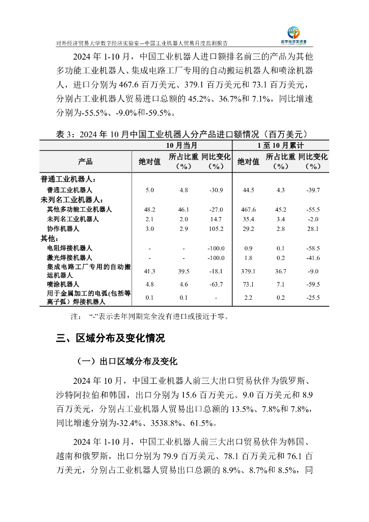 对外经济贸易大学:中国工业机器人贸易月度监测报告(2024年1-10月).pdf