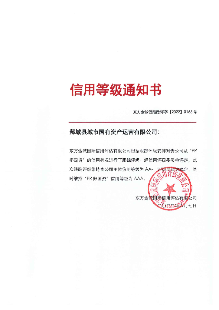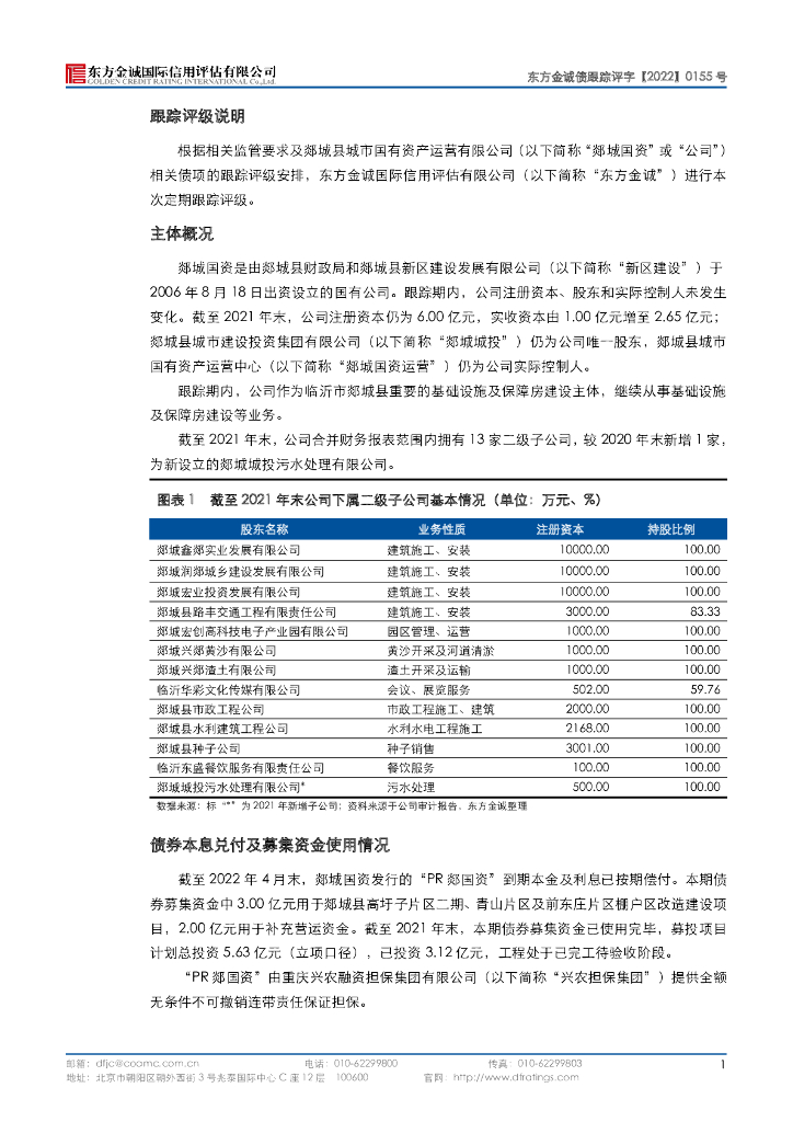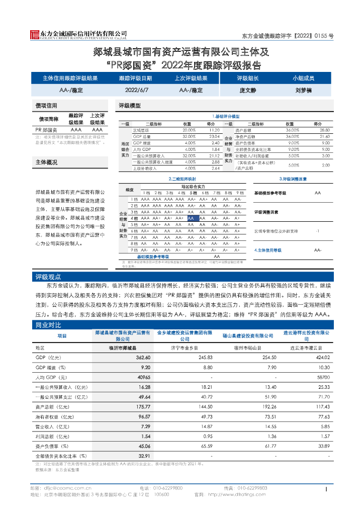 东方金诚:郯城县城市国有资产运营有限公司主体及“PR郯国资”2022年度跟踪评级报告.pdf