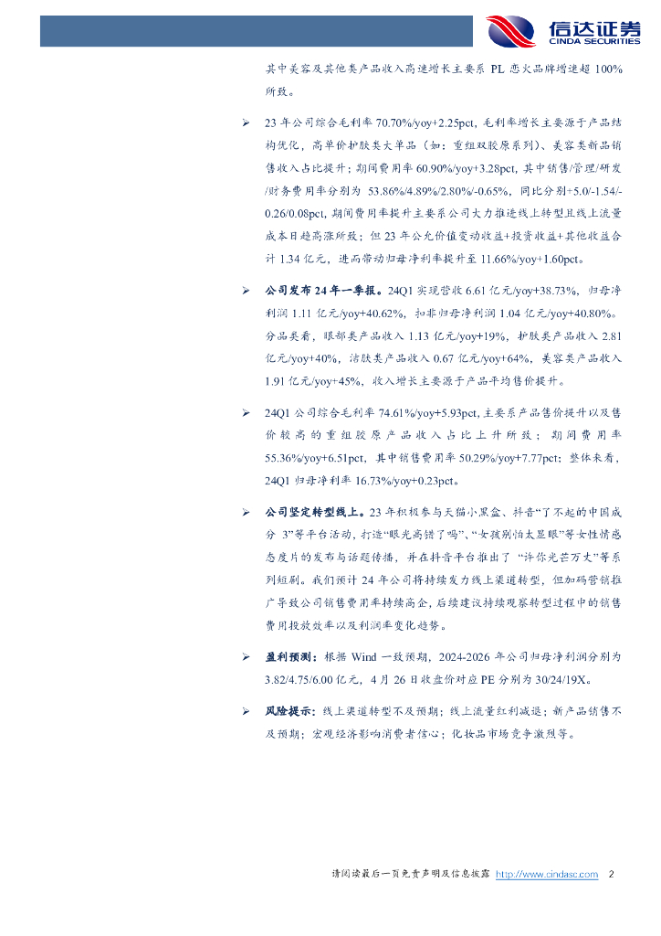 信达证券:丸美股份(603983)-23年报&24年一季报点评:23Q4经营性利润承压,期待线上渠道运营效率提升.pdf
