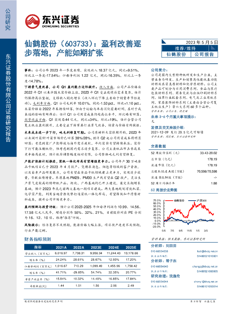 东兴证券:仙鹤股份(603733)-盈利改善逐步落地,产能如期扩张.pdf