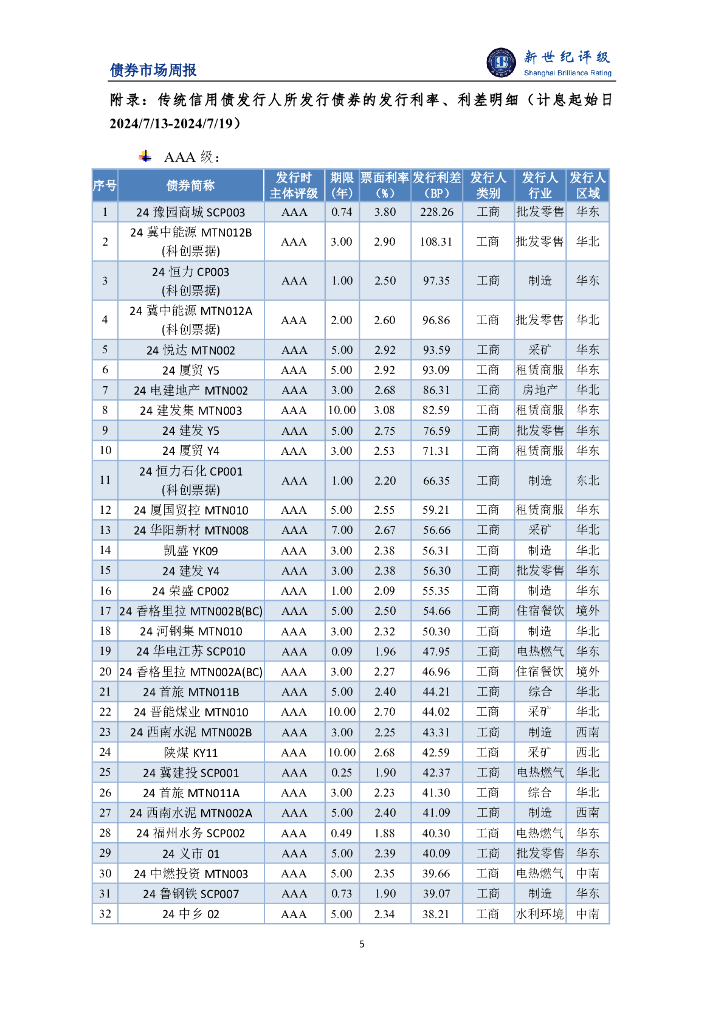 新世纪评级:债券发行规模环比下降 同业存单发行增幅明显——债券市场周报(2024/7/13-7/19).pdf