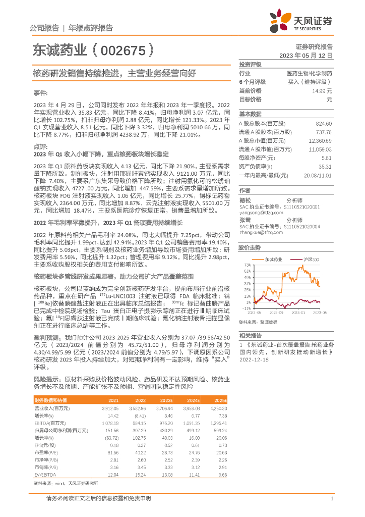 天风证券:东诚药业(002675)-核药研发销售持续推进,主营业务经营向好.pdf