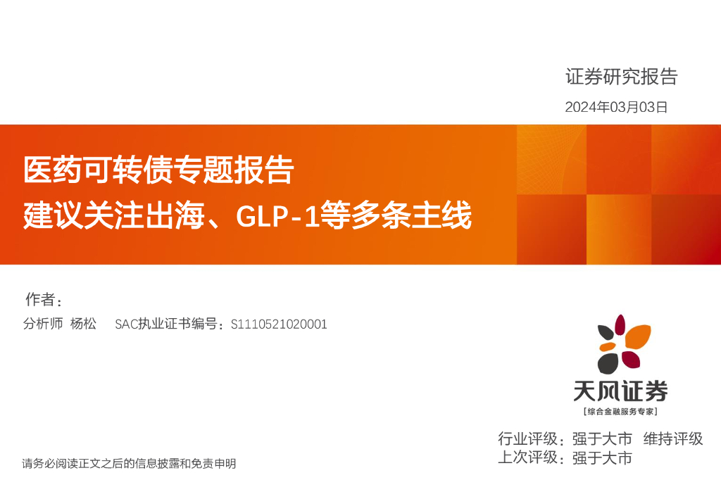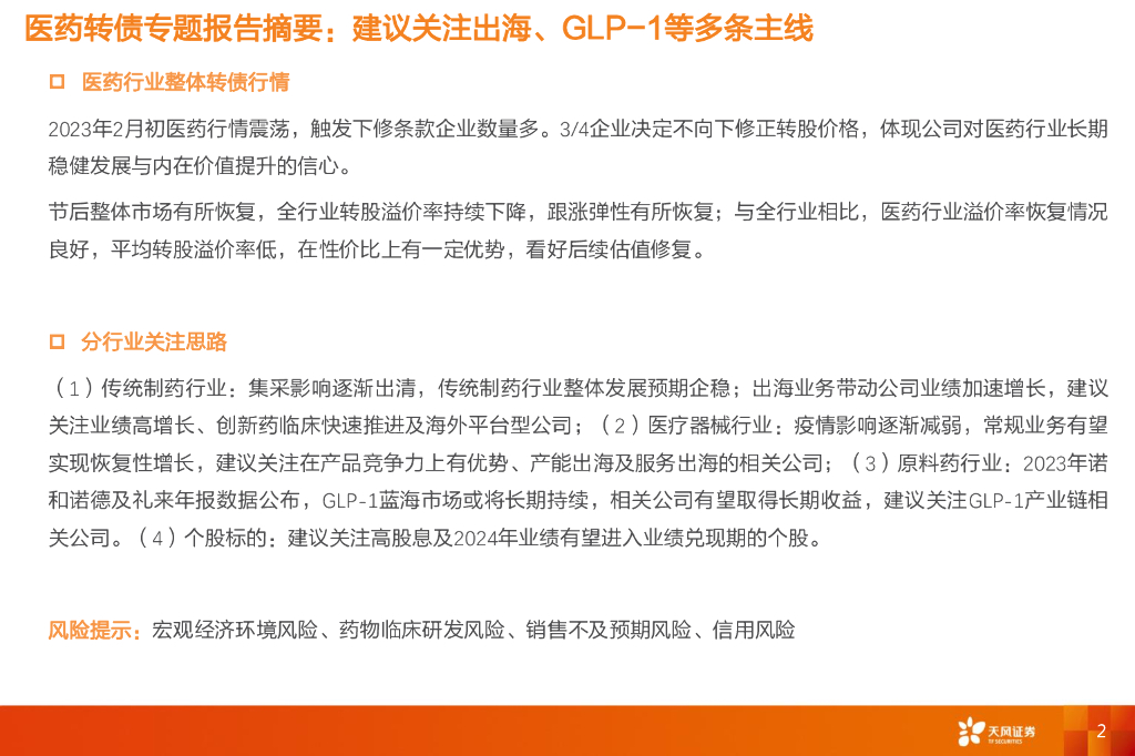 天风证券:医药可转债专题报告——建议关注出海、GLP-1等多条主线.pdf