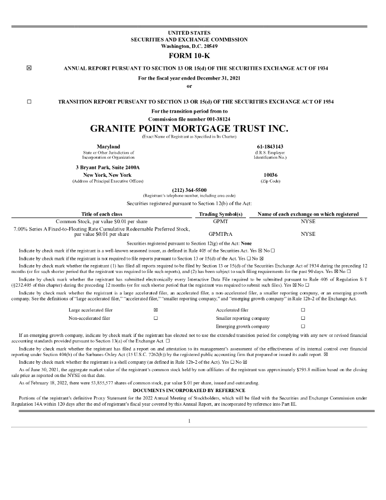 Granite Point Mortgage Trust Inc.(GPMT)2021财年年度报告(英文版).pdf