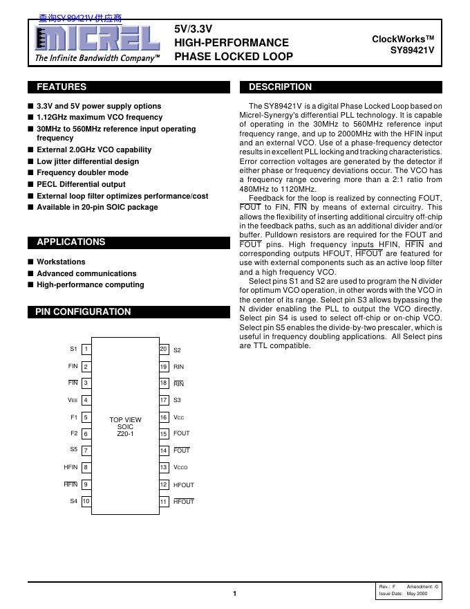 NATIONAL SEMICONDUCTOR - May 27, 2008 DS15BA101 1.5 Gbps Differential Buffer with Adjustable Output Voltage General 说明书