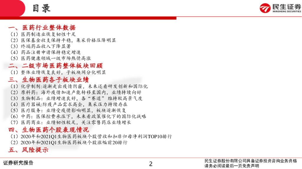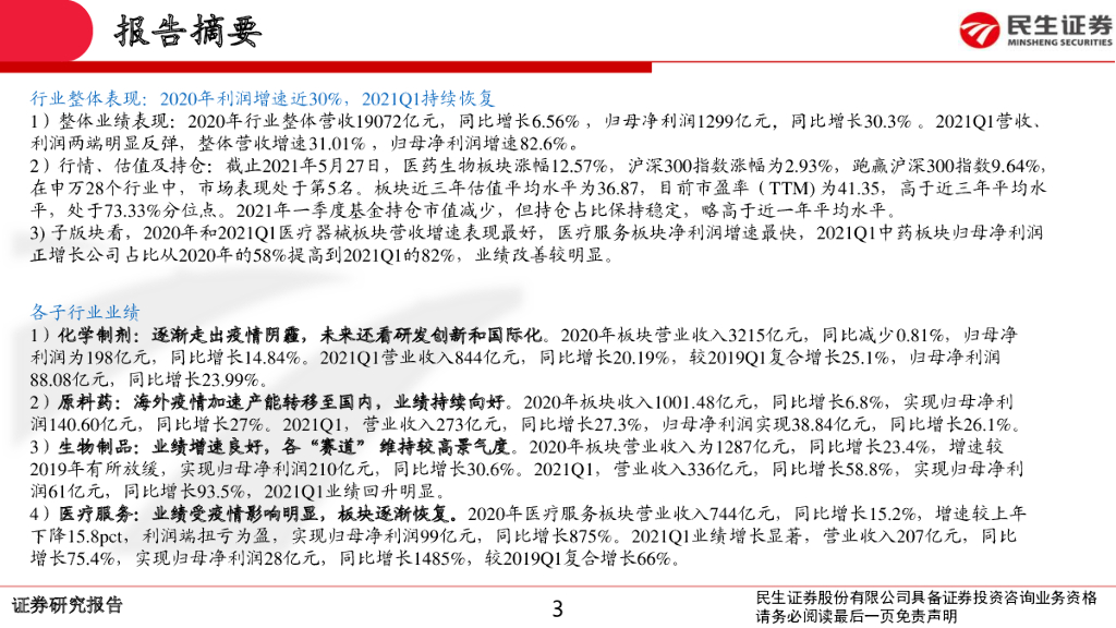 民生证券:医药行业2020年报及2021一季报总结:后疫情时代恢复良好,行业发展方兴未艾.pdf
