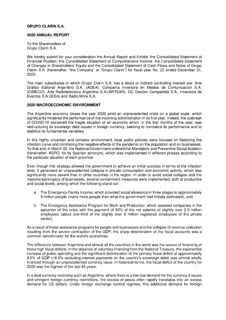 Grupo Clarín S.A.(GCLA)2020财年年度报告(英文版).pdf