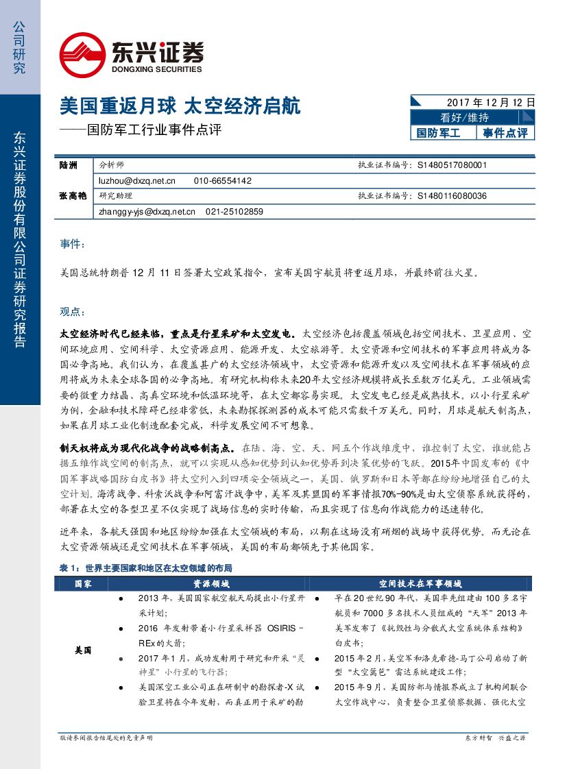 东兴证券:国防军工行业事件点评:美国重返月球 太空经济启航.pdf