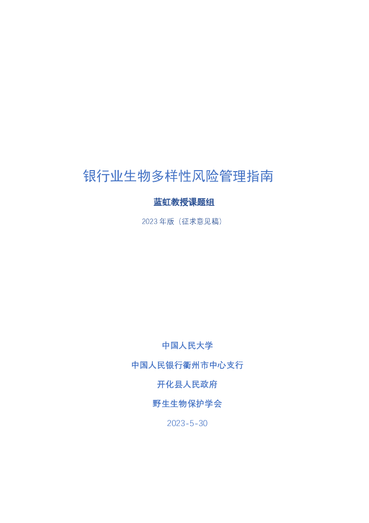 中国人民银行:银行生物多样性风险管理指南2023年版(征求意见稿).pdf