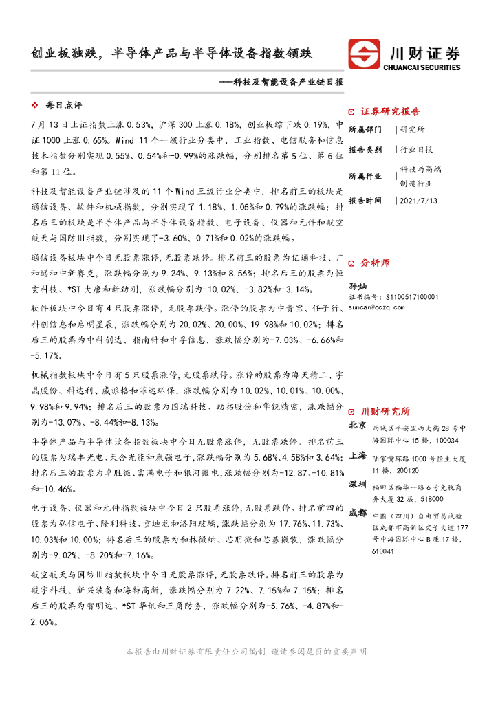 川财证券:科技及智能设备产业链日报:创业板独跌,半导体产品与半导体设备指数领跌.pdf
