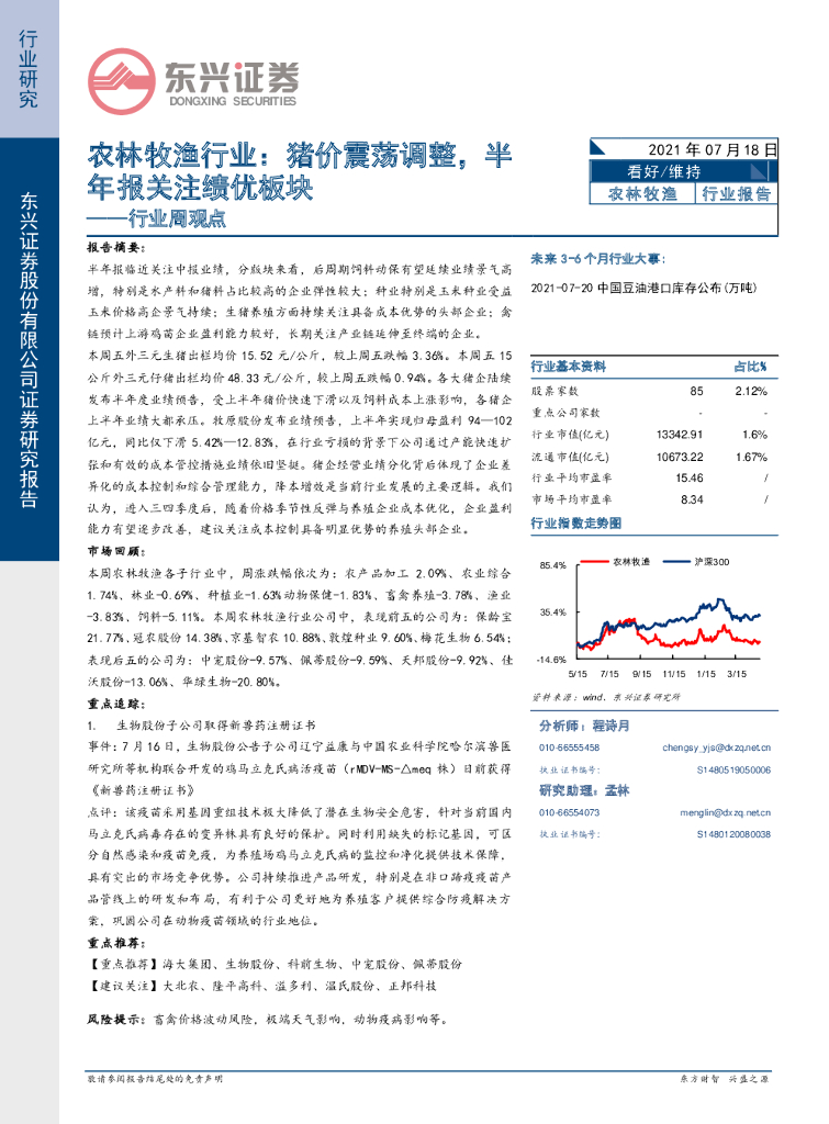 东兴证券:农林牧渔行业周观点:猪价震荡调整,半年报关注绩优板块.pdf