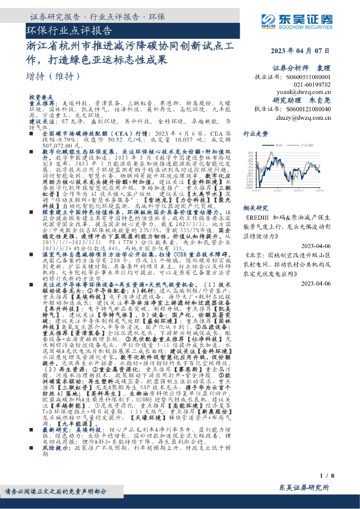 东吴证券:环保行业点评报告:浙江省杭州市推进减污降碳协同创新试点工作,打造绿色亚运标志性成果.pdf