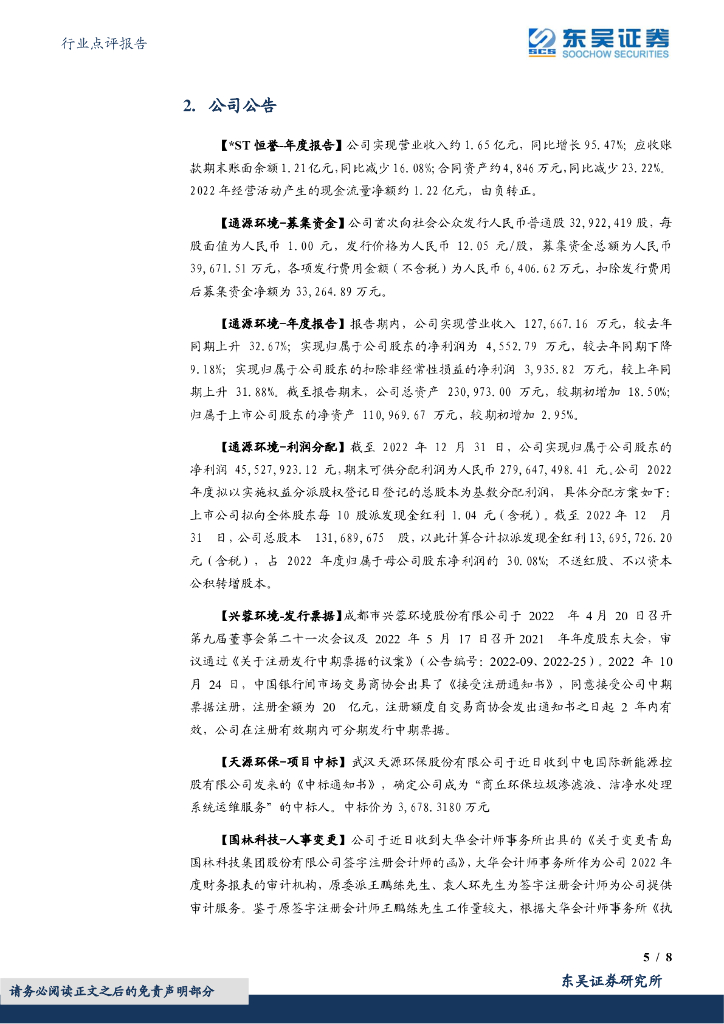 东吴证券:环保行业跟踪周报:【高能环境】受益金属价格上涨,【龙净环保】矿山绿电贡献业绩,重视水固红利价值
