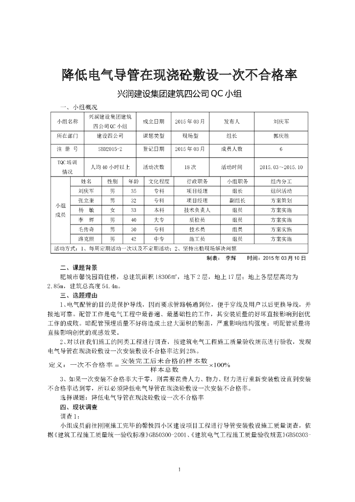降低电气导管在现浇砼敷设一次不合格率.doc