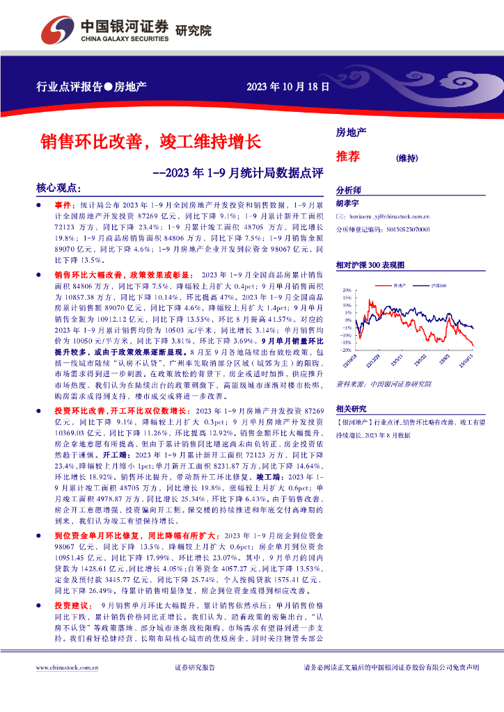 中国银河:房地产2023年1-9月统计局数据点评:销售环比改善,竣工维持增长.pdf