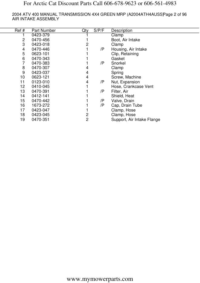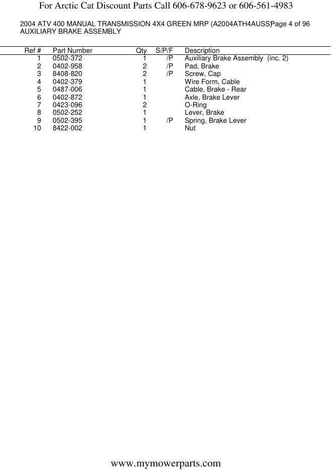 2004 年 Arctic Cat ATV 400 手动变速器 4X4 绿色 MRP (A2004ATH4AUSS) 的零件清单.pdf