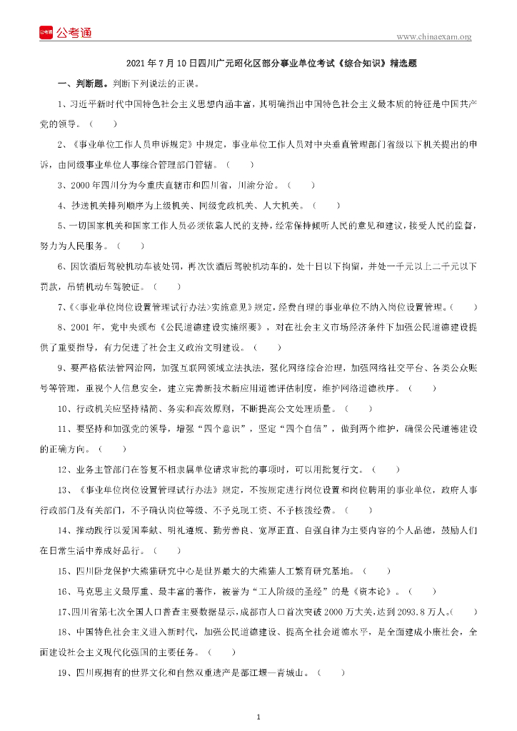 2021年7月10日四川广元昭化区部分事业单位考试《综合知识》精选题.pdf