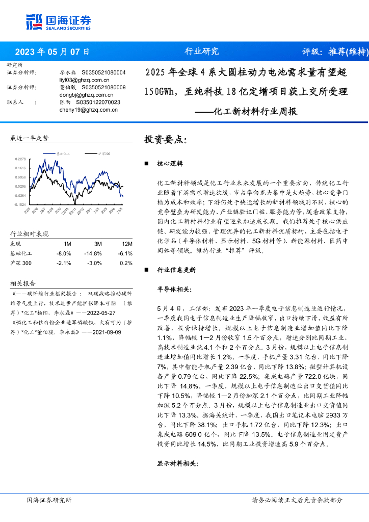国海证券:化工新材料行业周报:2025年全球4系大圆柱动力电池需求量有望超150GWh,至纯科技18亿定增项目获上交所受理.pdf