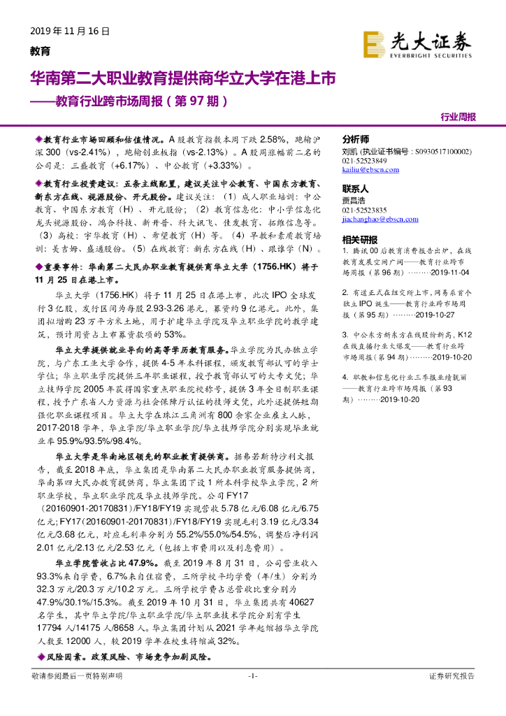 光大证券:教育行业跨市场周报(第97期):华南第二大职业教育提供商华立大学在港上市.pdf