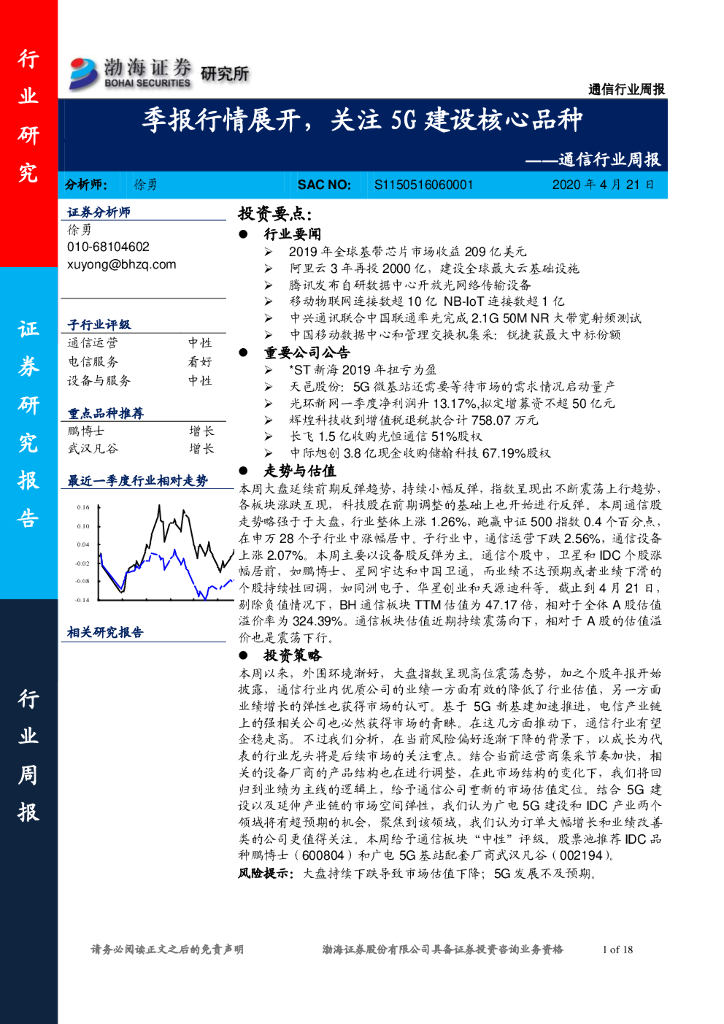 渤海证券:通信行业周报:季报行情展开,关注5G建设核心品种.pdf