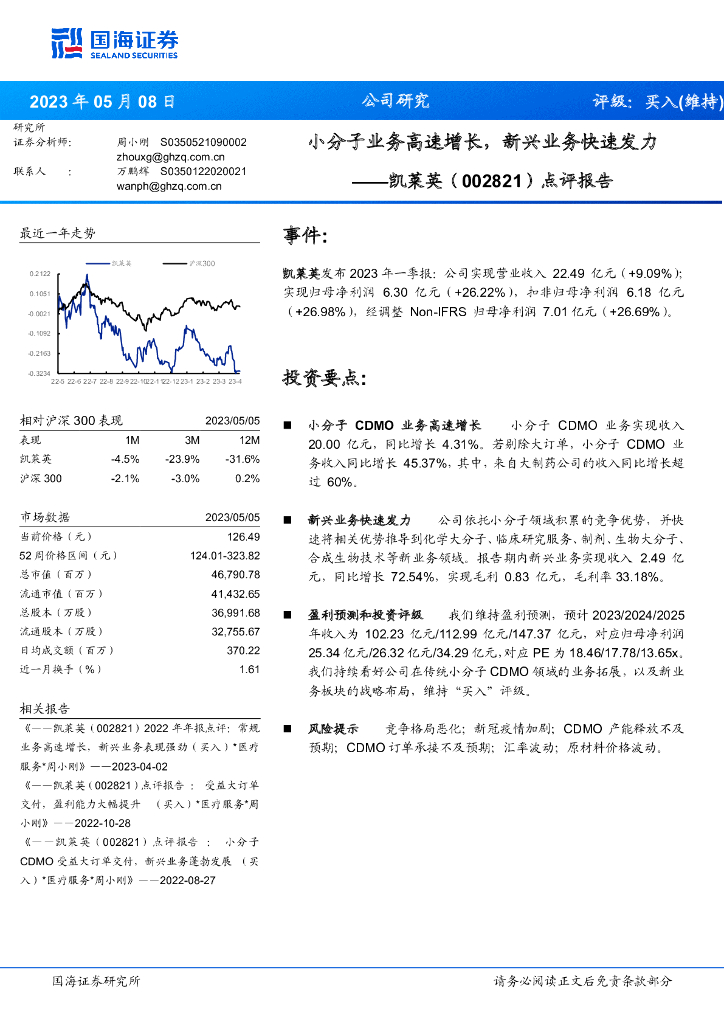 国海证券:凯莱英(002821)-点评报告:小分子业务高速增长,新兴业务快速发力.pdf