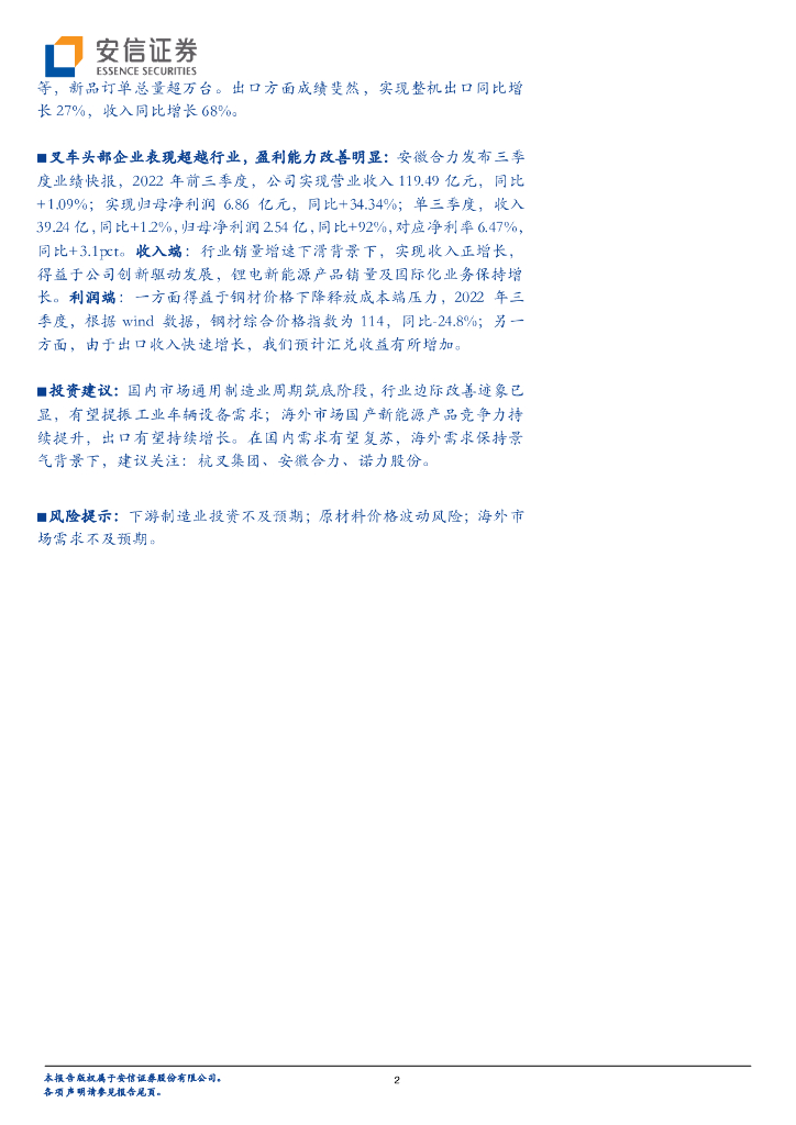 安信证券:2022年9月叉车行业点评:行业基本面或迎边际改善,头部企业盈利能力已率先修复.pdf