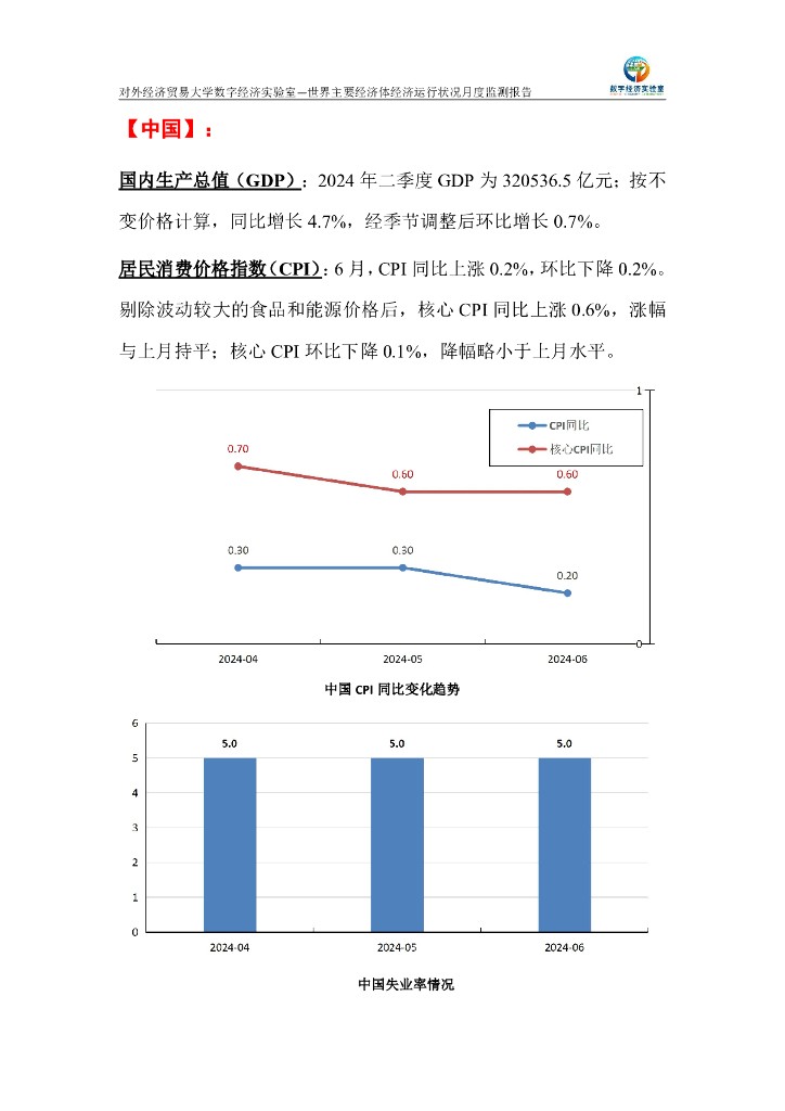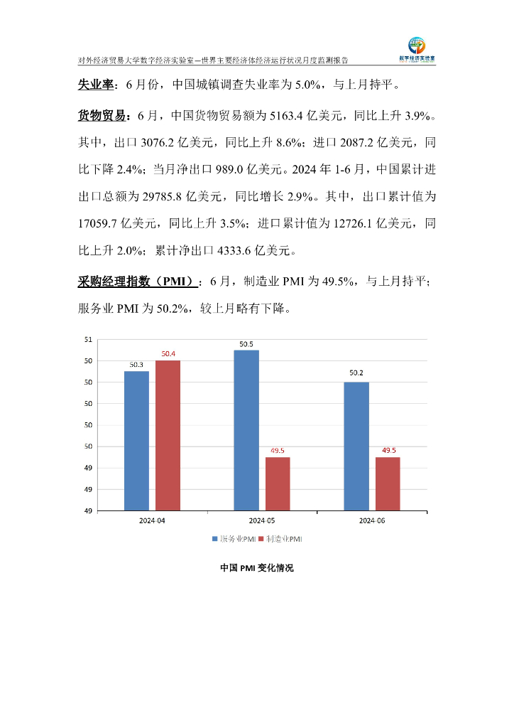 对外经济贸易大学:世界主要经济体经济运行状况月度监测报告(2024年6月).pdf