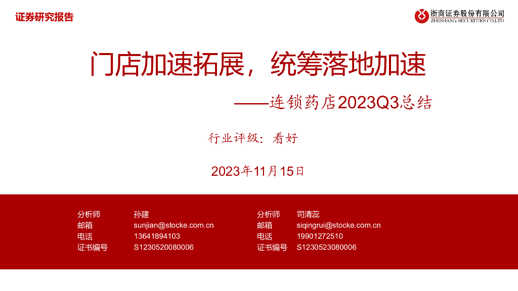 浙商证券:连锁药店2023Q3总结:门店加速拓展,统筹落地加速.pdf