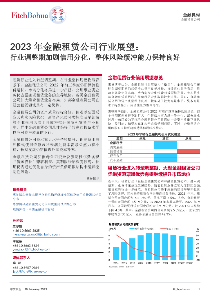 惠誉博华:2023年金融租赁公司行业展望:行业调整期加剧信用分化,整体风险缓冲能力保持良好.pdf