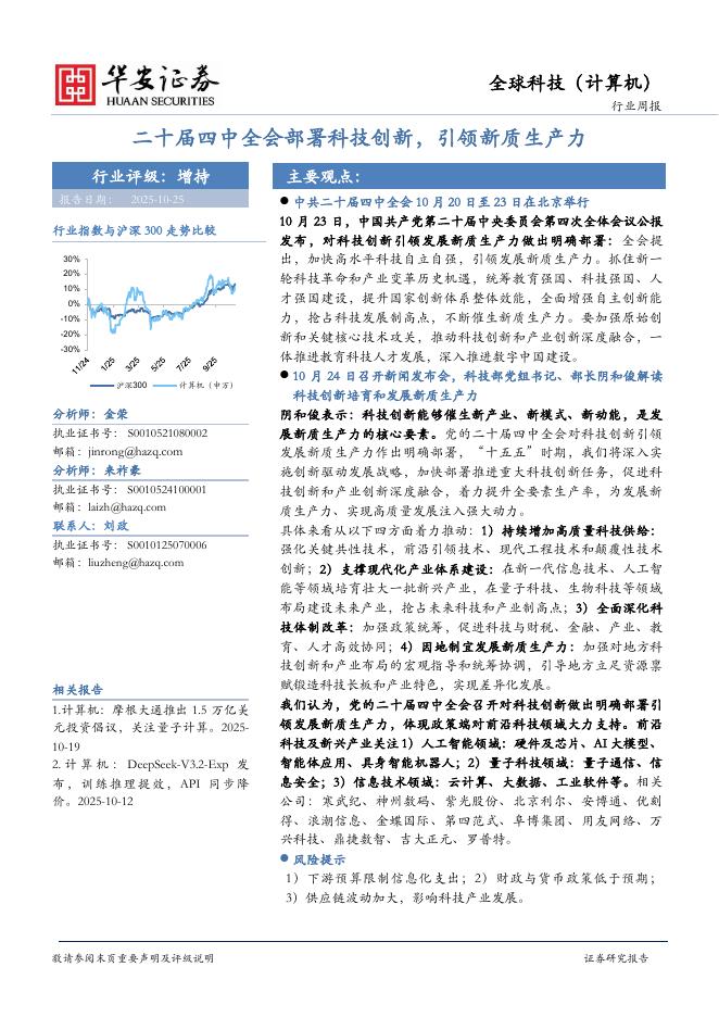 华安证券:全球科技(计算机)行业周报:二十届四中全会部署科技创新,引领新质生产力.pdf