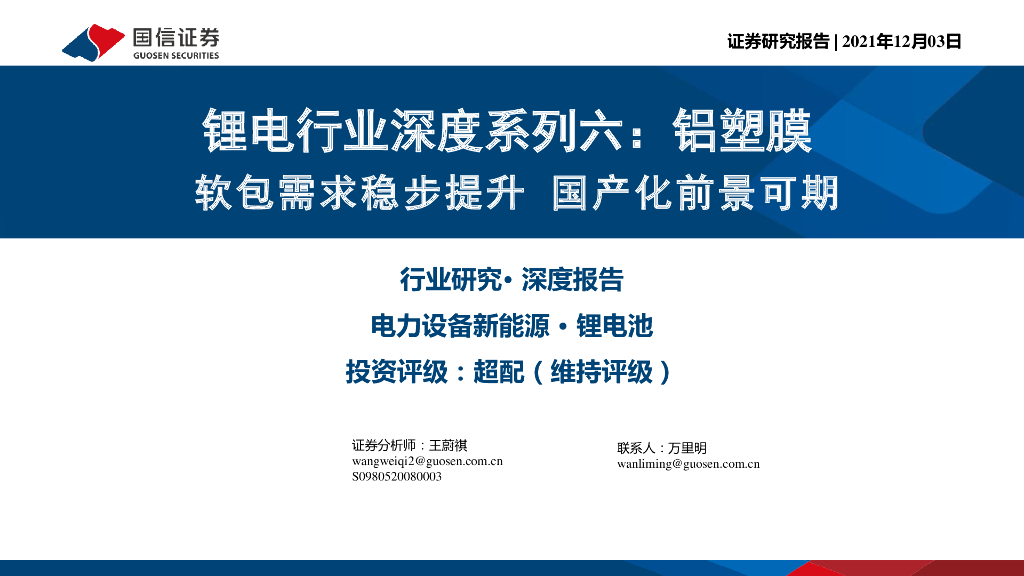 国信证券:锂电行业深度系列六-铝塑膜软包需求稳步提升 国产化前景可期.pdf