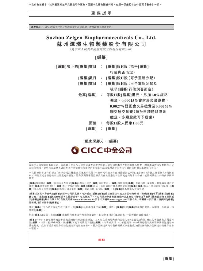 Zelgen苏州泽璟生物制药股份有限公司港交所IPO上市招股说明书.pdf