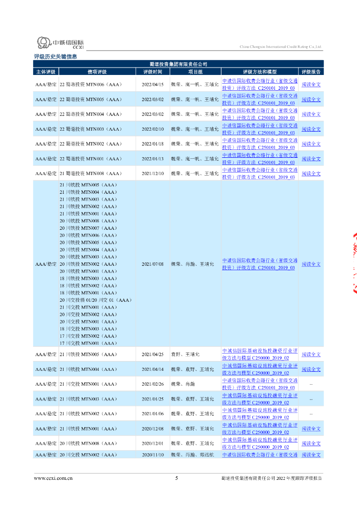中诚信:蜀道投资集团有限责任公司2022年度跟踪评级报告.pdf