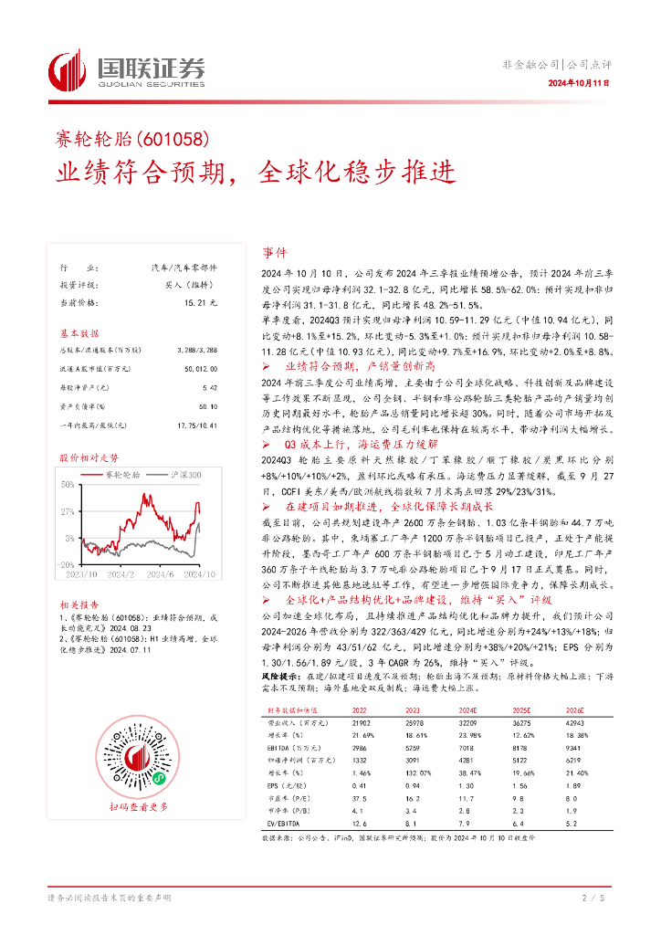 国联证券:赛轮轮胎(601058)-业绩符合预期,全球化稳步推进.pdf