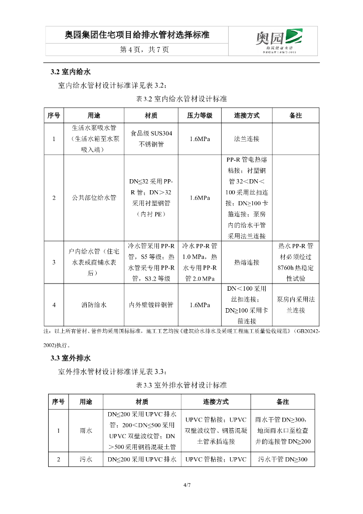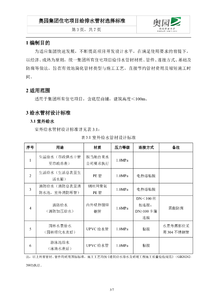 知名地产丨住宅项目给排水管材选择标准.doc