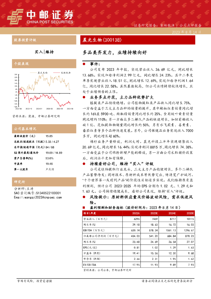 中邮证券:晨光生物(300138)-多品类齐发力,业绩持续向好.pdf
