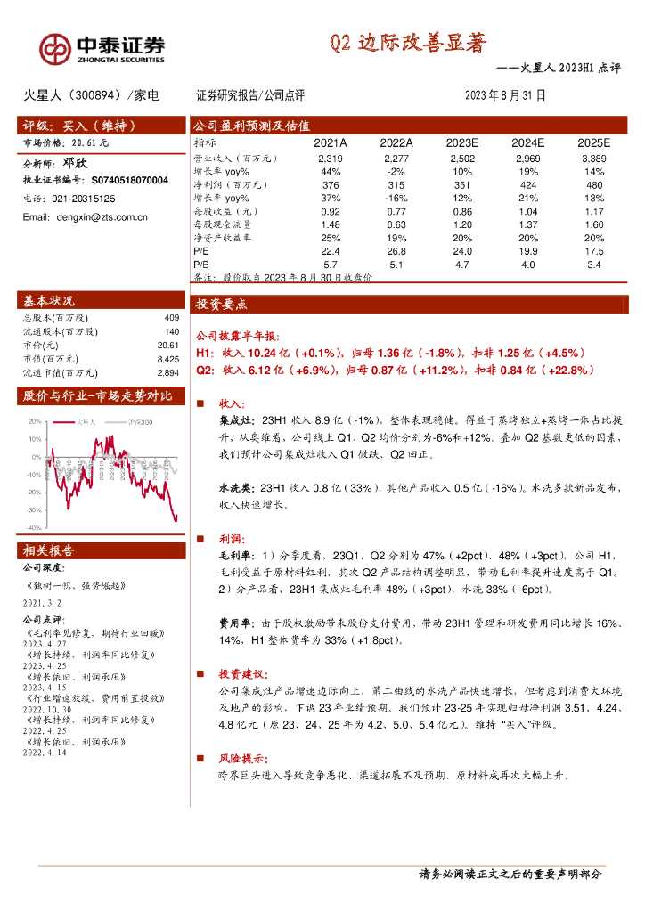中泰证券:火星人(300894)-2023H1点评:Q2边际改善显著.pdf