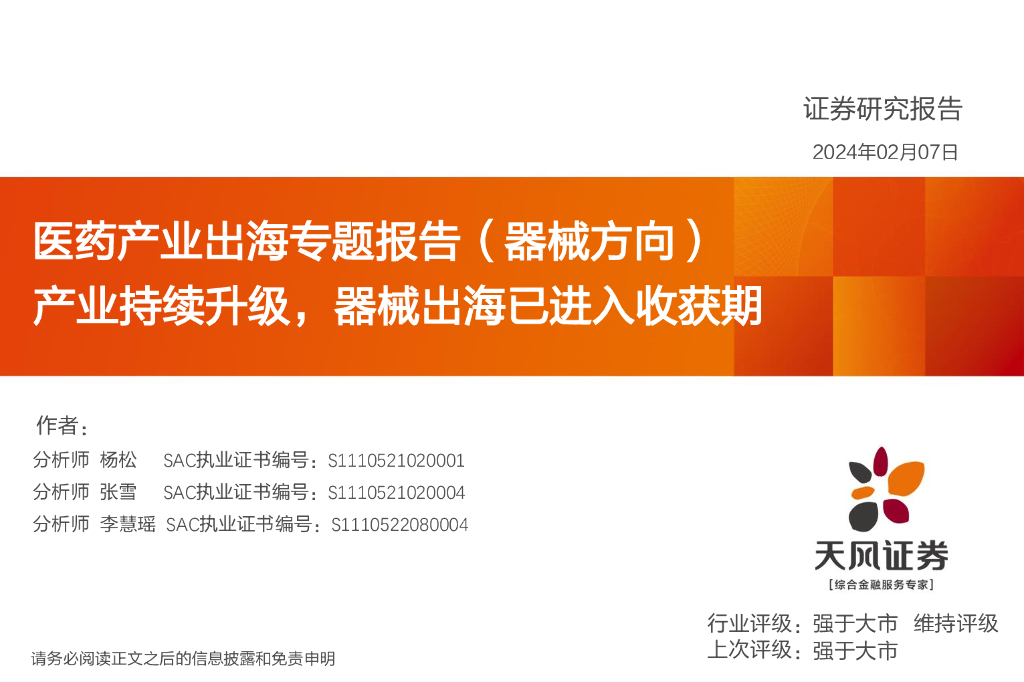 天风证券:医药产业出海专题报告(器械方向):产业持续升级,器械出海已进入收获期.pdf