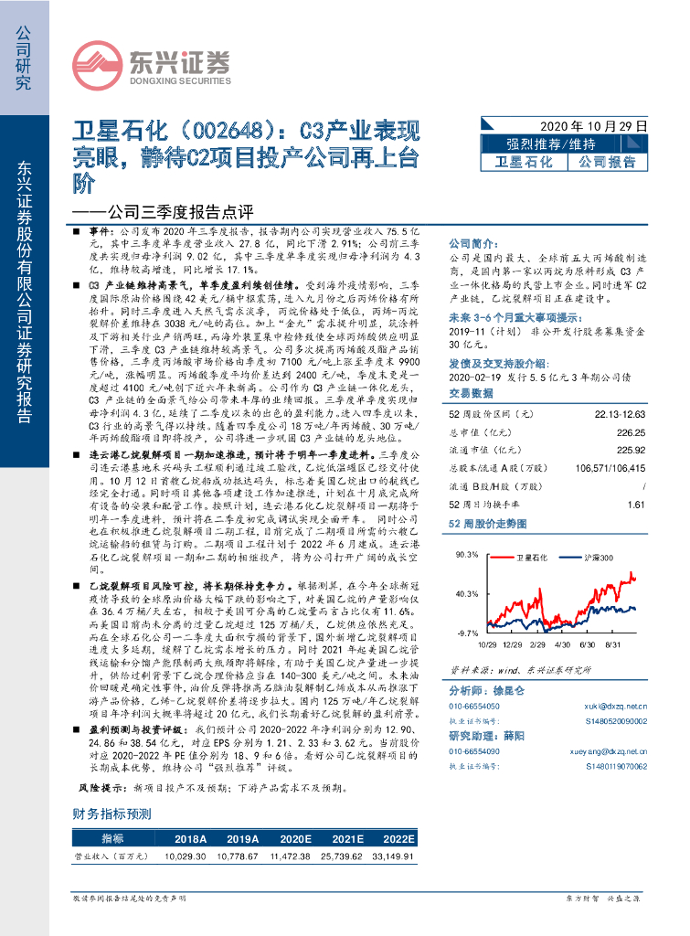 东兴证券:卫星石化(002648)-公司三季度报告点评:C3产业表现亮眼,静待C2项目投产公司再上台阶.pdf