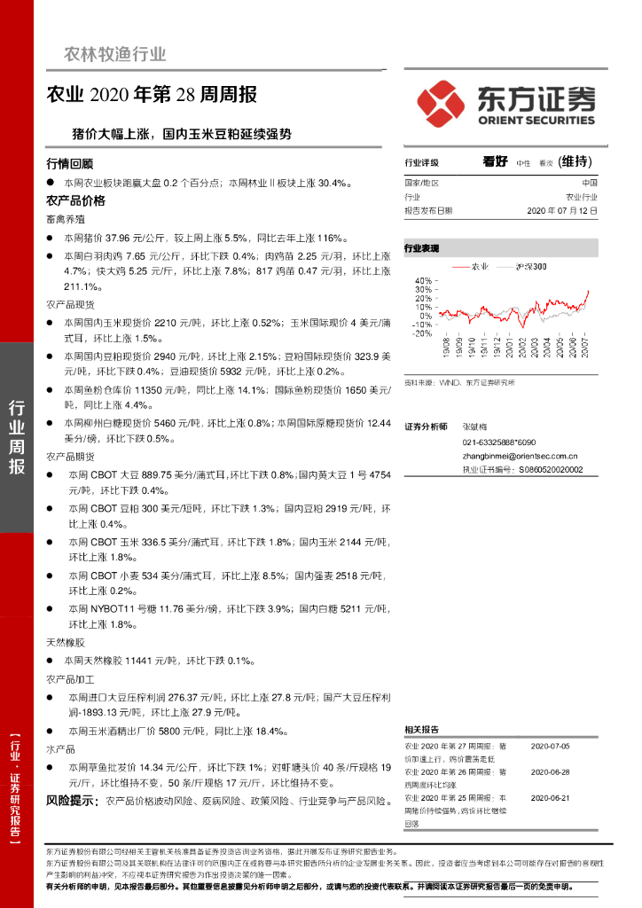 东方证券:农业2020年第28周周报:猪价大幅上涨,国内玉米豆粕延续强势.pdf
