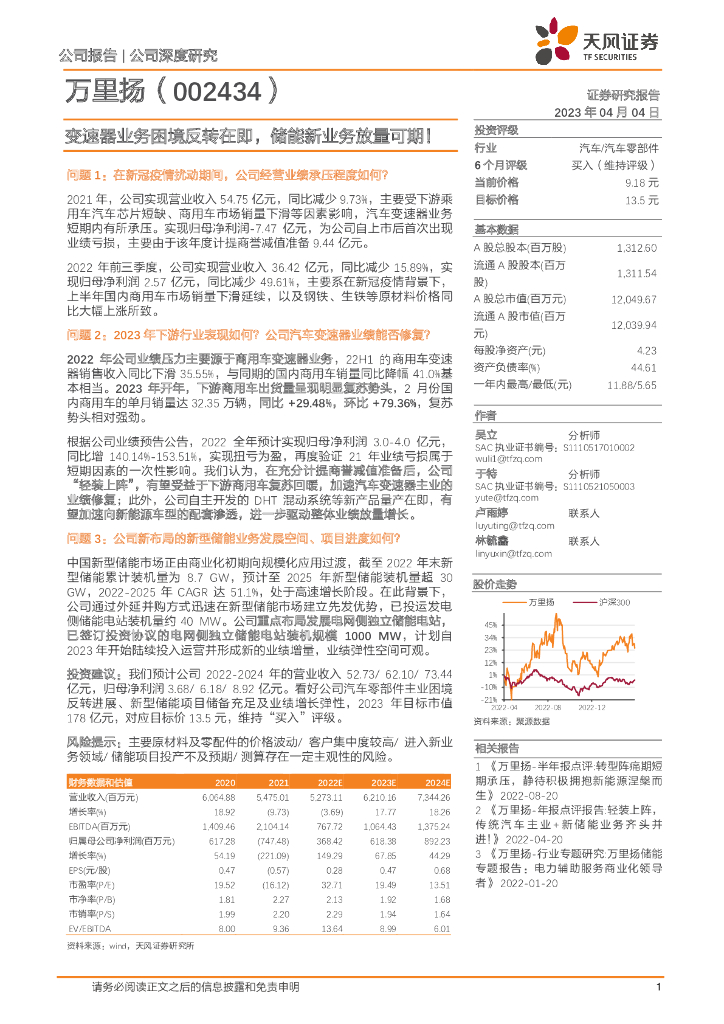 天风证券:万里扬(002434)-变速器业务困境反转在即,储能新业务放量可期!.pdf