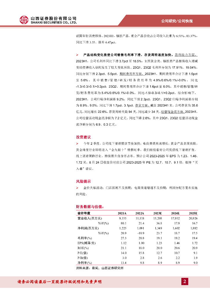 山西证券:周大生(002867)-黄金产品销售高增,23Q2线下展店加速.pdf