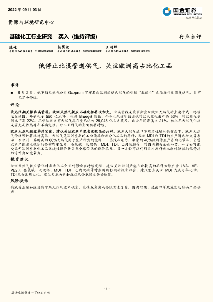 国金证券:基础化工行业研究:俄停止北溪管道供气,关注欧洲高占比化工品.pdf