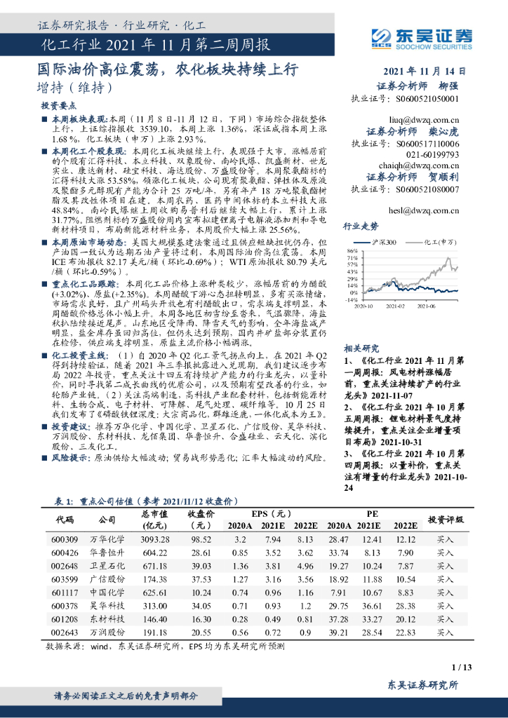 东吴证券:化工行业2021年11月第二周周报:国际油价高位震荡,农化板块持续上行.pdf